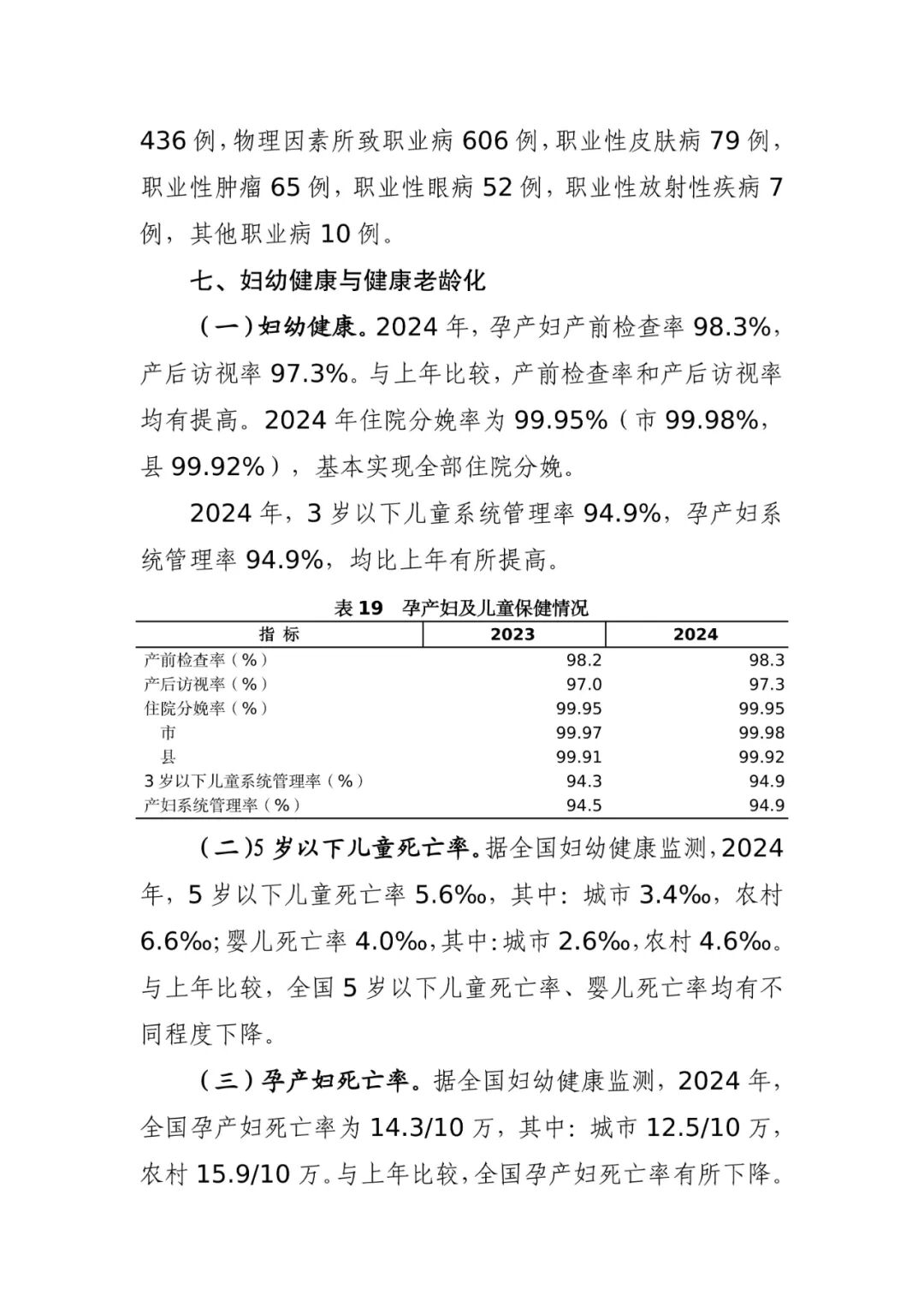 近日,國家衛(wèi)生健康委發(fā)布《2024年我國衛(wèi)生健康事業(yè)發(fā)展統計公報》。根據《公報》,我國人均預期壽命達到79歲,孕產婦死亡率下降到14.3/10萬,嬰兒死亡率下降至4.0‰。統計數據表明,全國衛(wèi)生健康系統以習近平新時代中國特色社會主義思想為指導,深入貫徹習近平總書記關于健康中國建設的重要論述精神,全面貫徹黨的二十大和二十屆二中、三中全會精神,推出一批創(chuàng)新性、普惠性、兜底性服務舉措,衛(wèi)生健康事業(yè)得到了新發(fā)展,人民健康水平持續(xù)提升。
